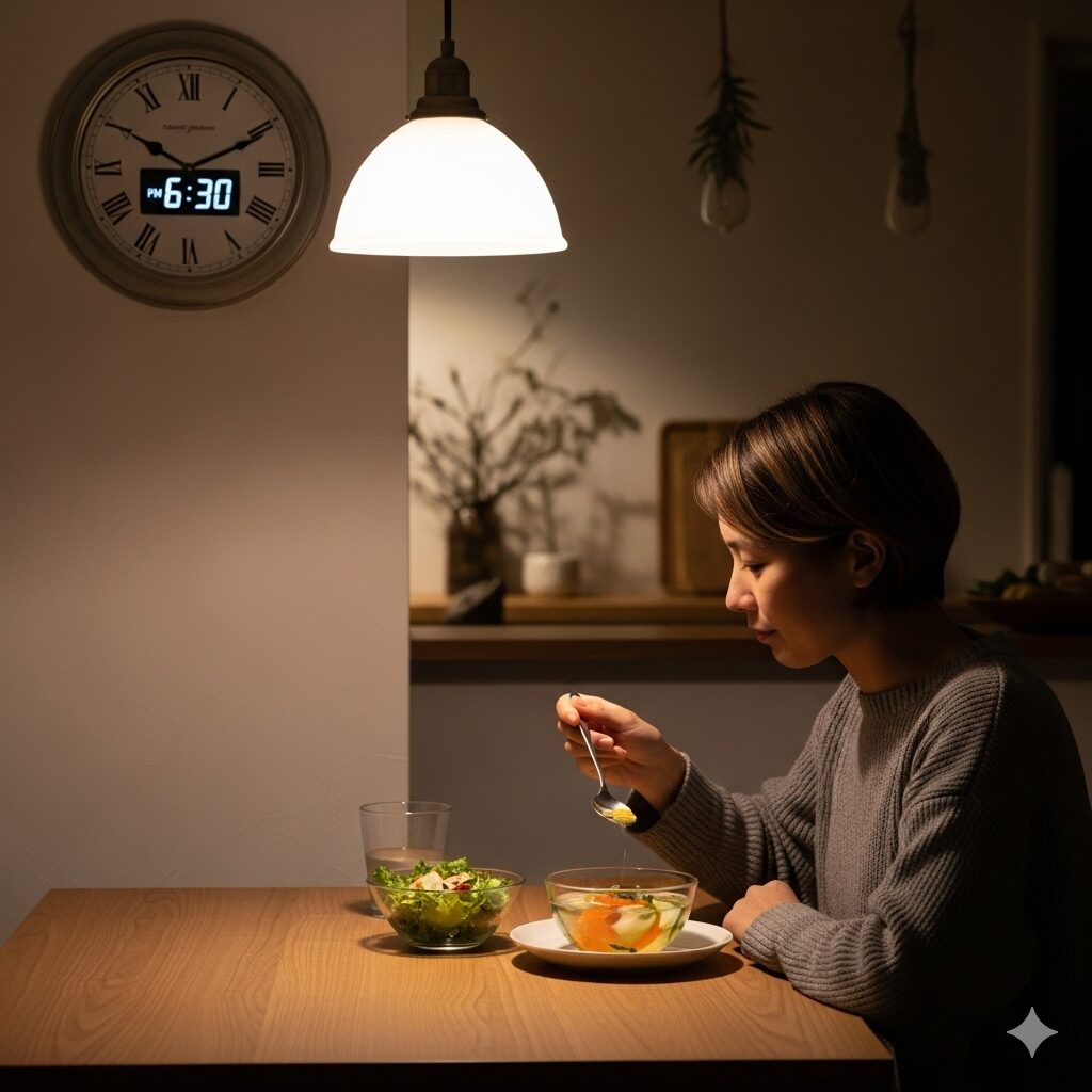- 夕食は代謝が落ちる時間 → 「軽く・早めに」