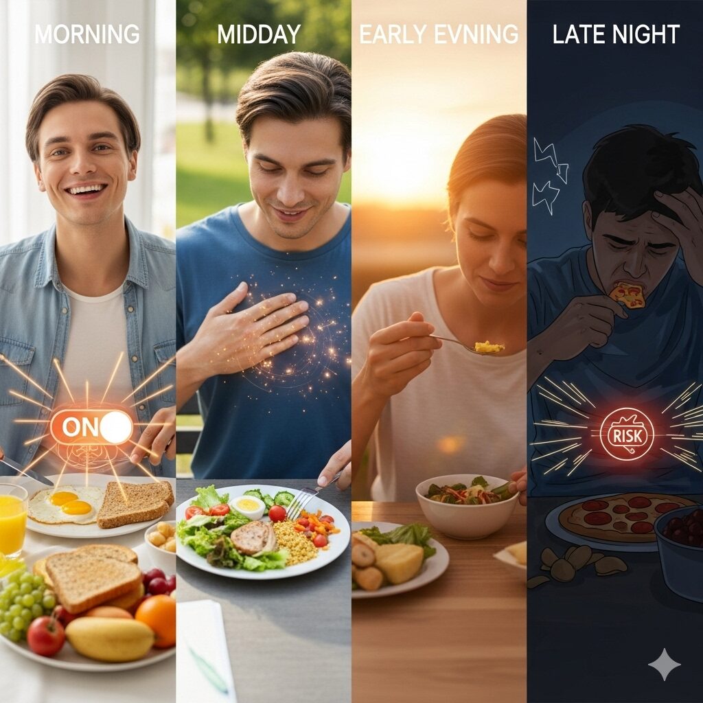 ● 夜:代謝が低下し、糖や脂肪が蓄積しやすい
