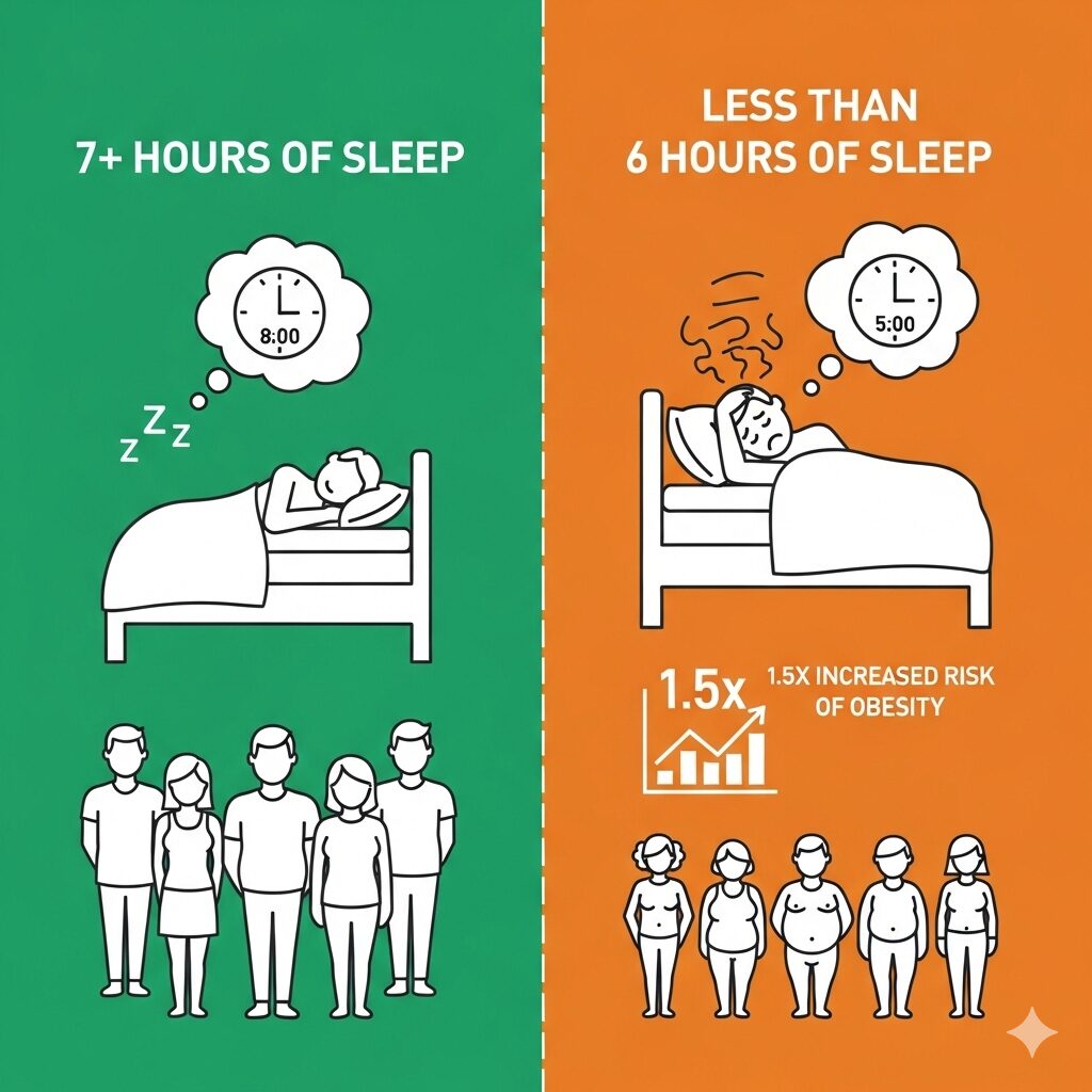 ● 研究で、睡眠時間が短い人ほど肥満や糖尿病リスクが高いことが判明。