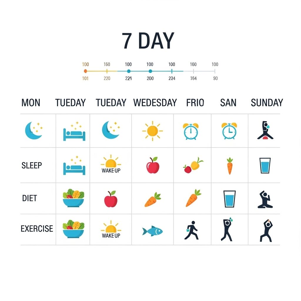 - ダイエット成功には「7時間以上の睡眠+規則正しい生活」が必須条件。