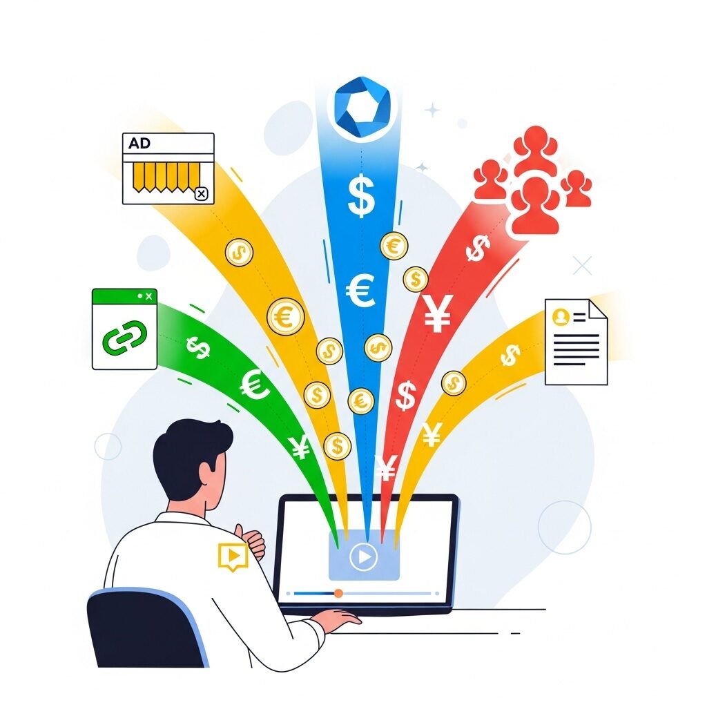 • 広告収入:動画再生時に表示される広告から収益